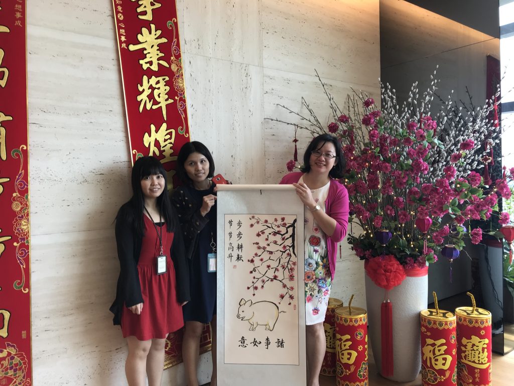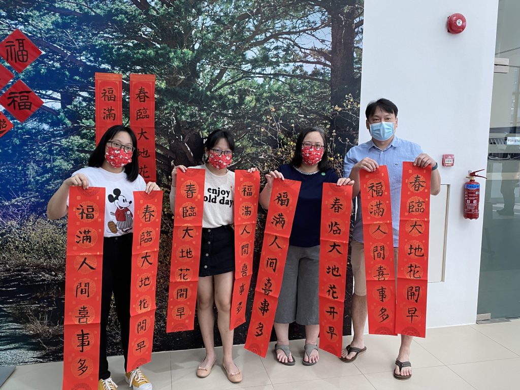 It represents blessings like good health, prosperous business wealth and happiness for the whole family during Chinese New Year. During the Visual Arts Centre Chinese New Year team bonding event, participants can bring home their piece of couplets and decorate their home’s doorway.