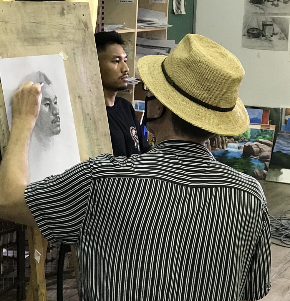 Our instructor, Michael during a Portrait Drawing Class. 教师 Michael 的肖像课。